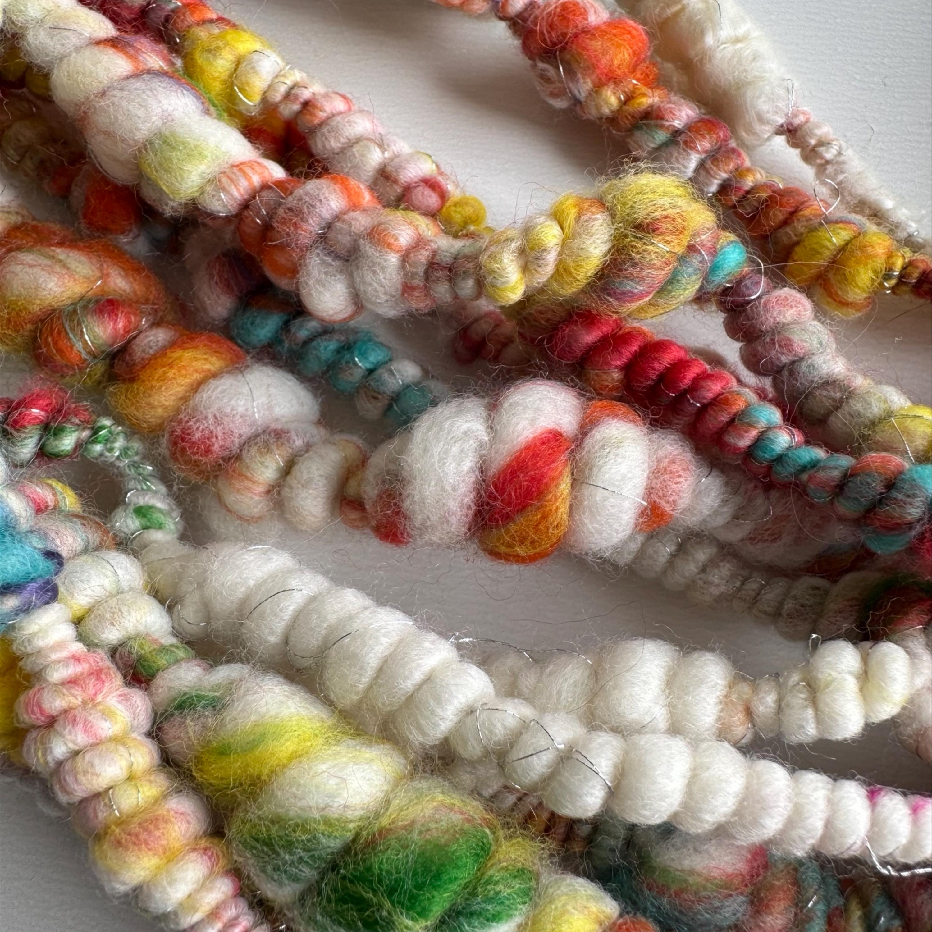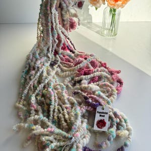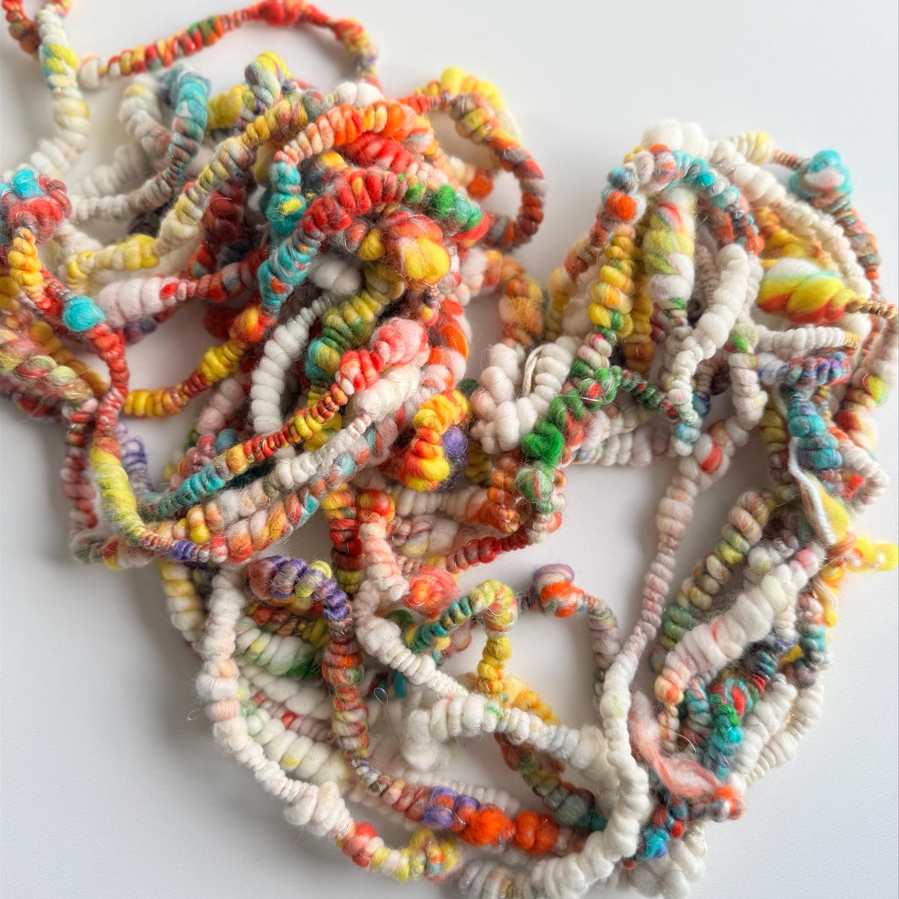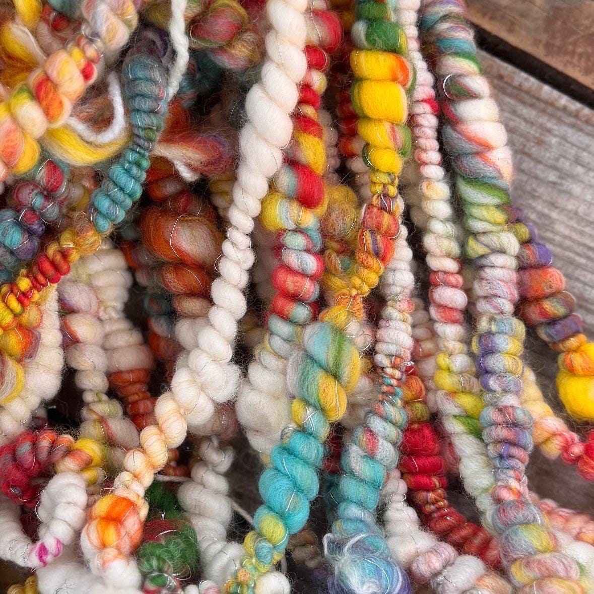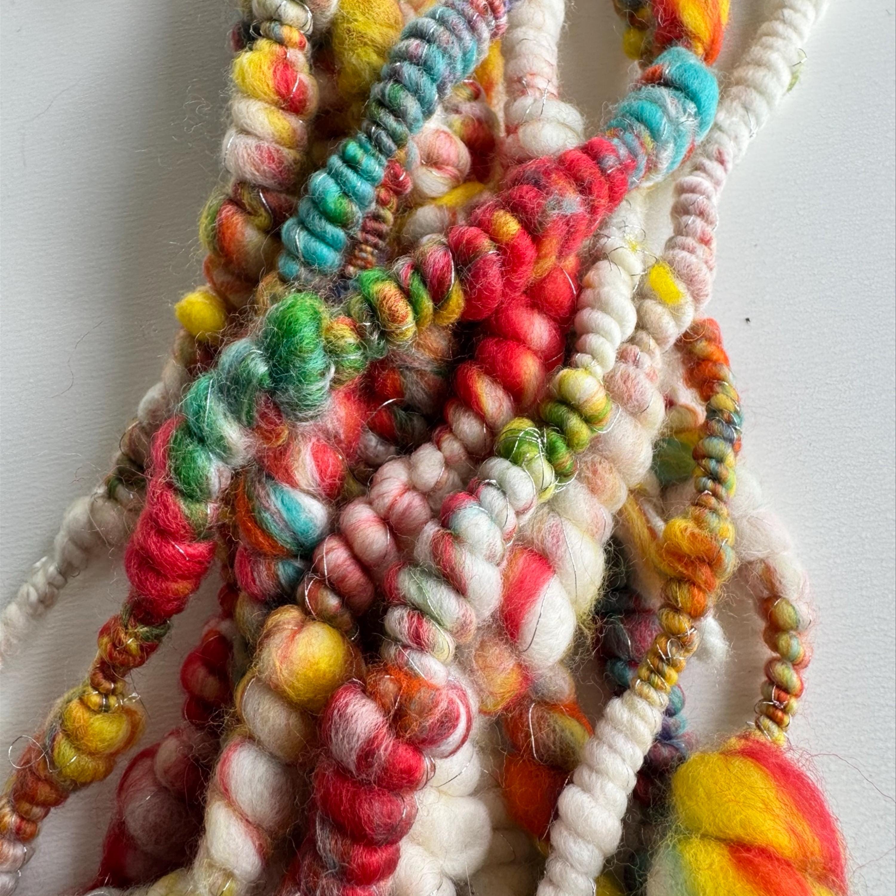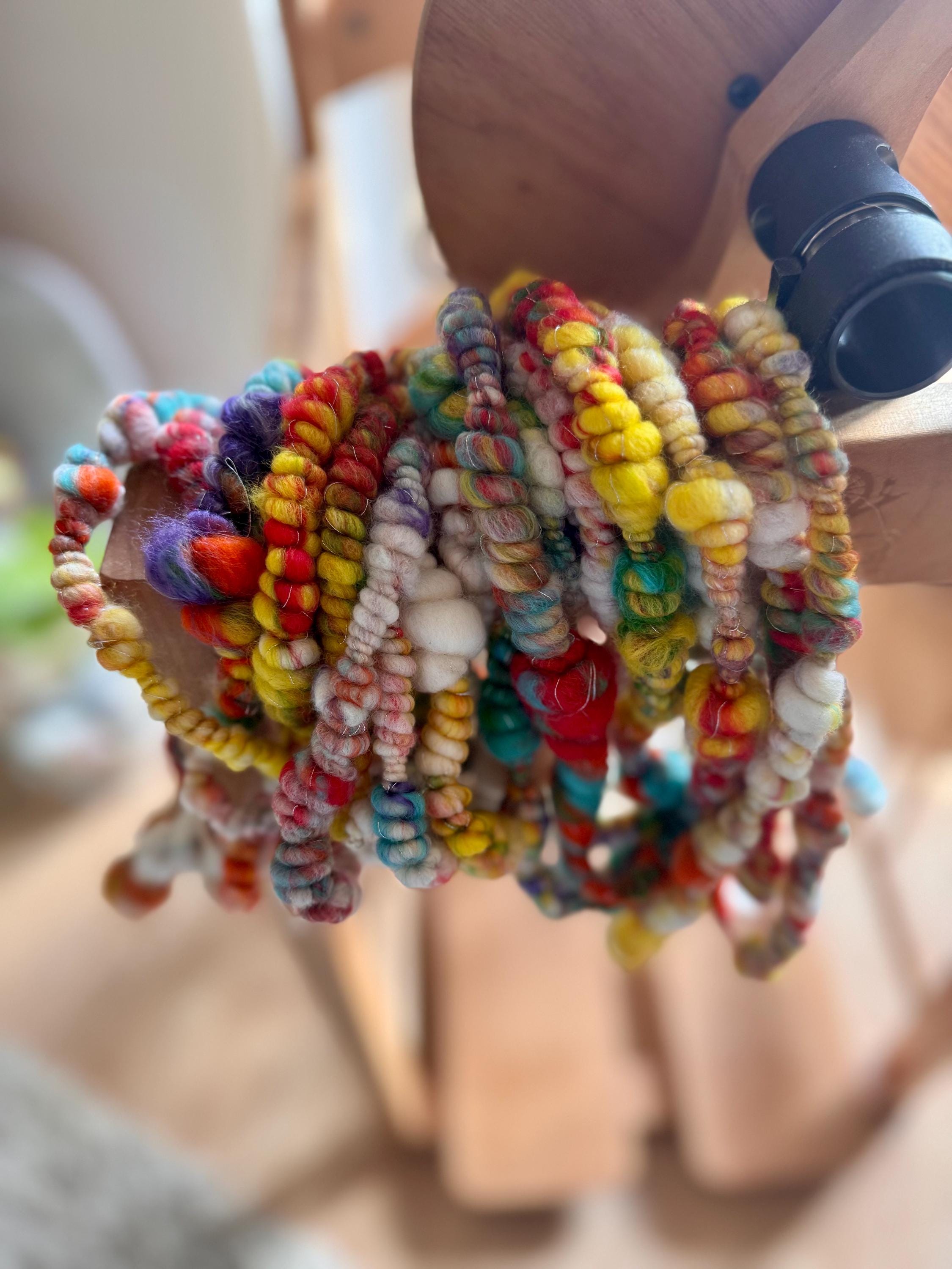 All the yarns I sell here on Etsy are hand-spun by me. The first picture is photographed under daylight in the room. The video was also shot in the room under daylight. Depending on the screen, the displayed color may differ slightly from the actual color.