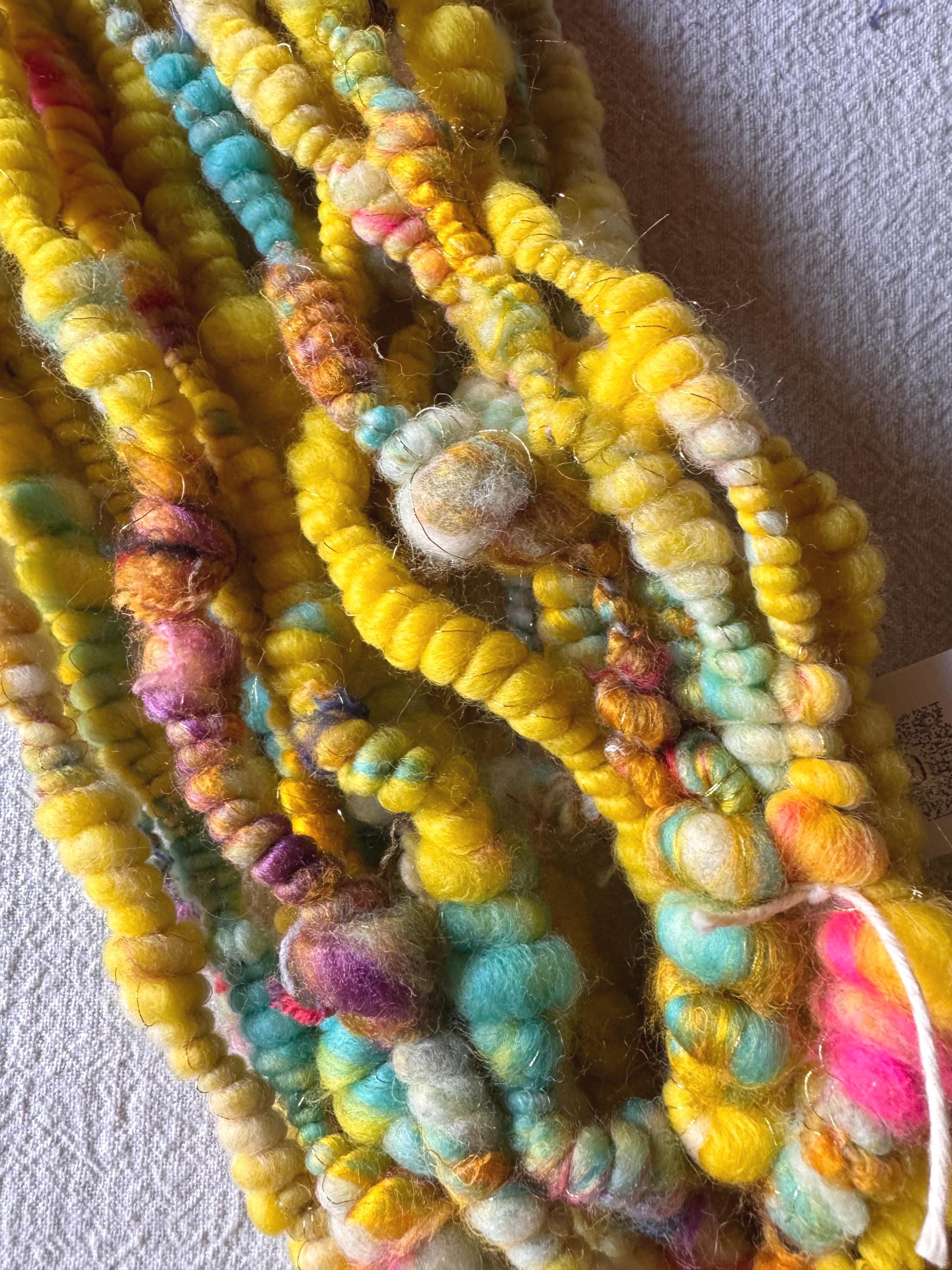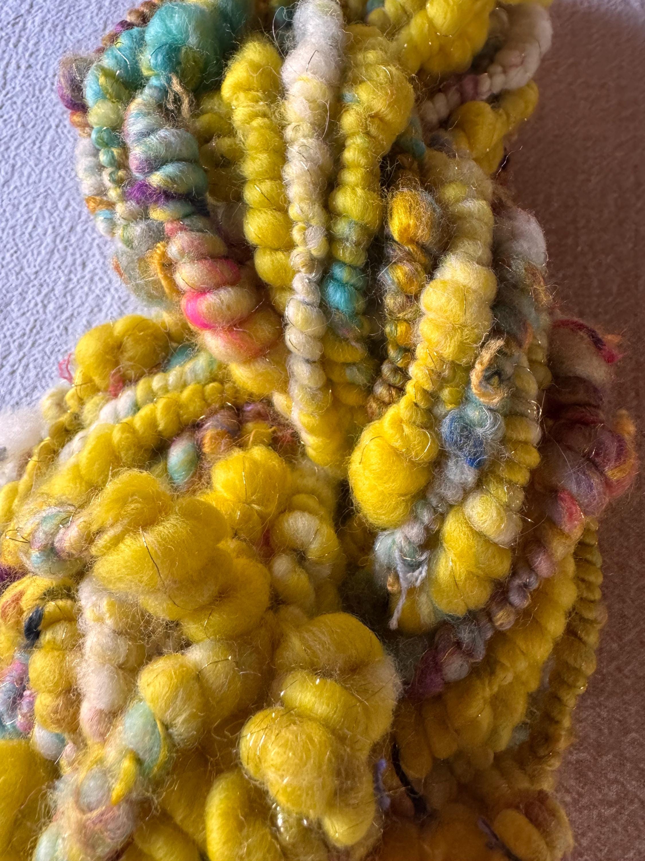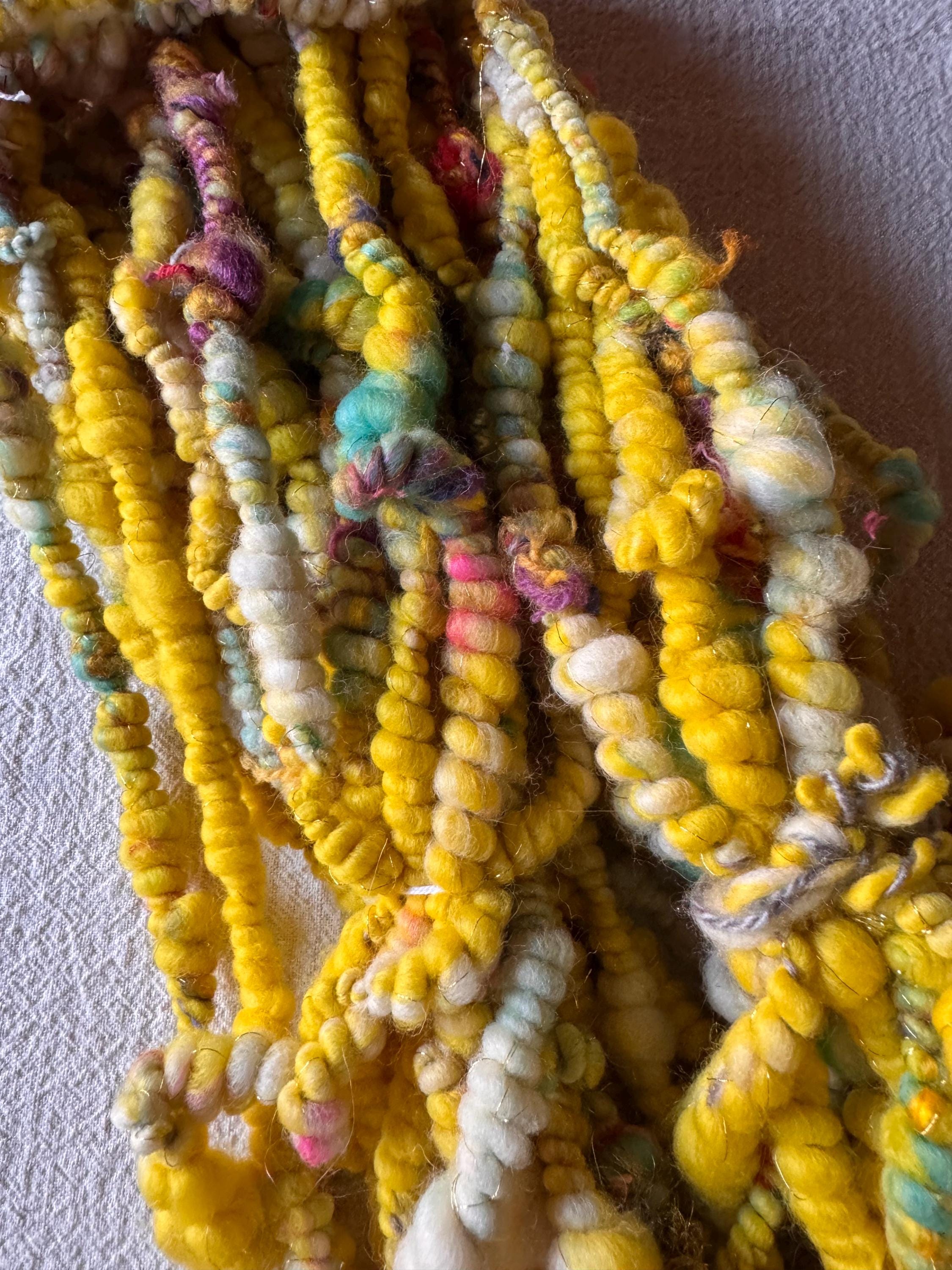 All the yarns I sell here on Etsy are hand-spun by me. The first picture is photographed under daylight in the room. The video was also shot in the room under daylight. Depending on the screen, the displayed color may differ slightly from the actual color.