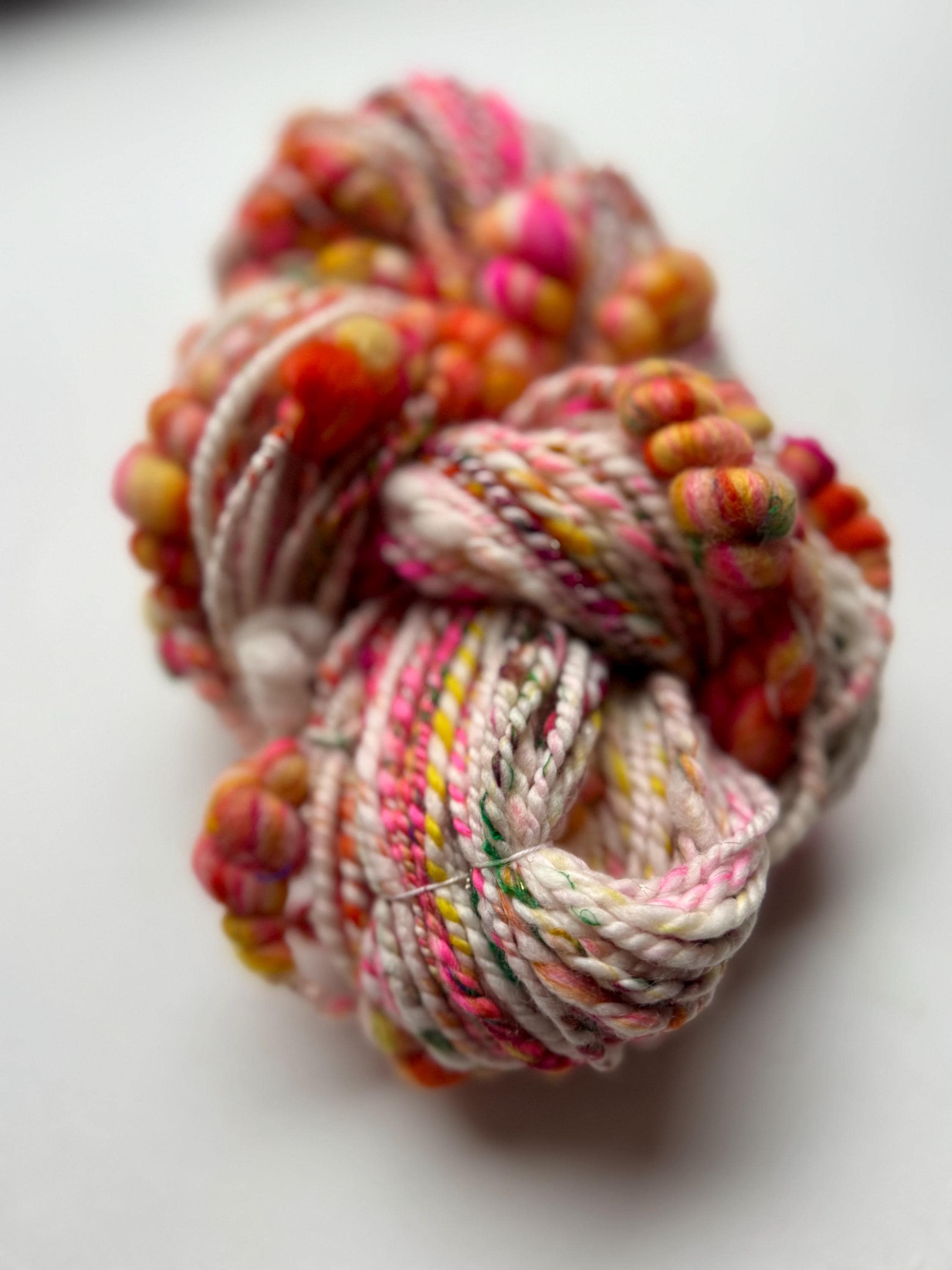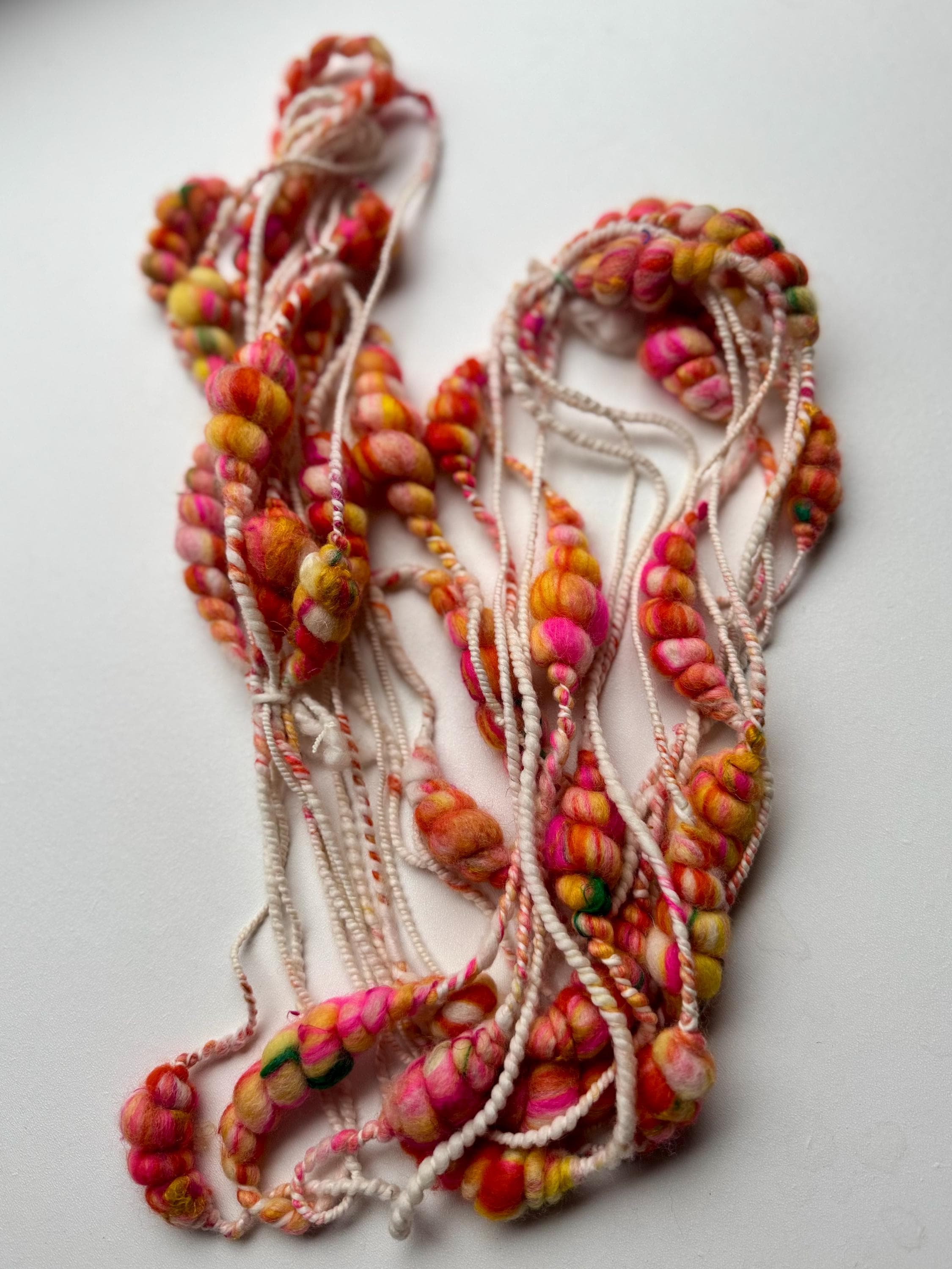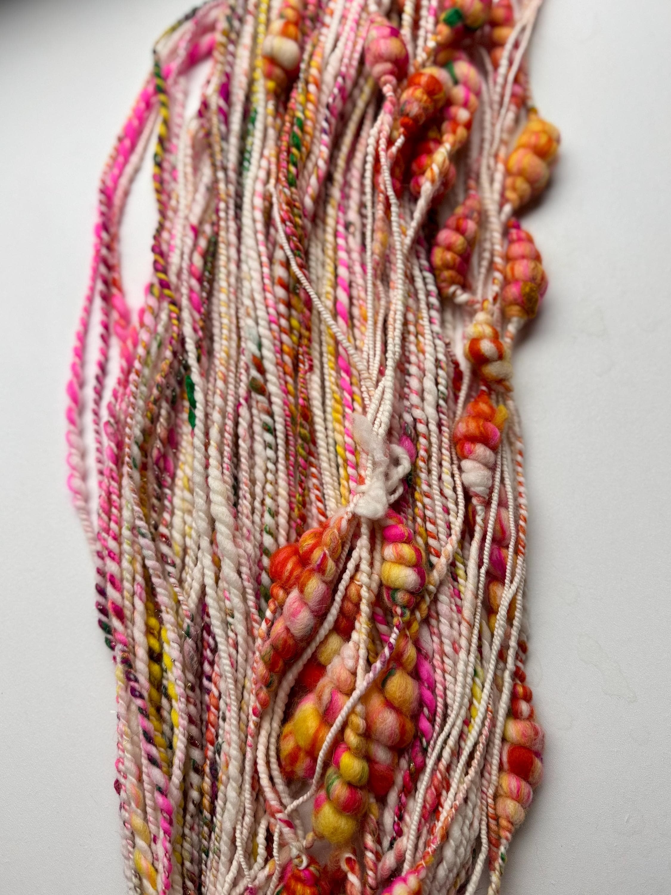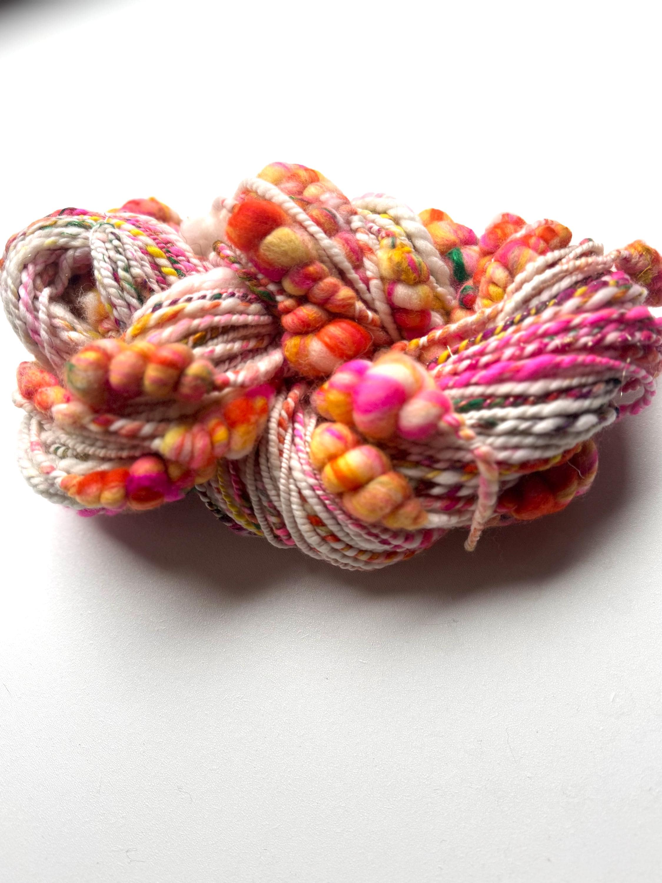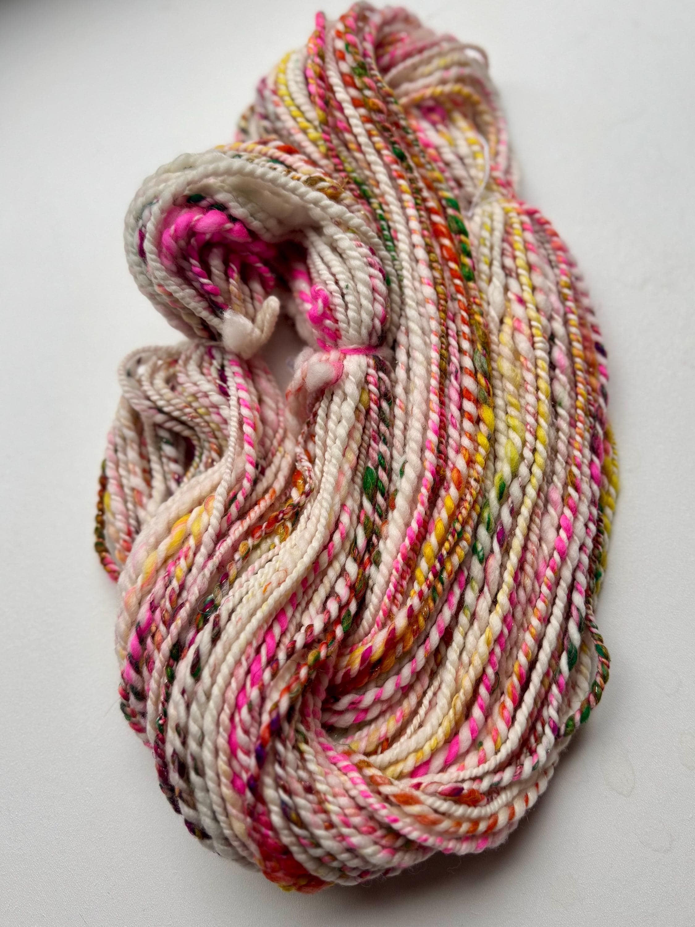 All the yarns I sell here on Etsy are hand-spun by me. The first picture is photographed under daylight in the room. The video was also shot in the room under daylight. Depending on the screen, the displayed color may differ slightly from the actual color.